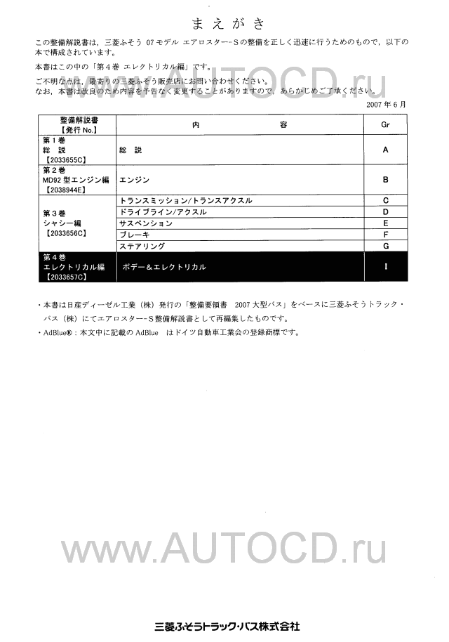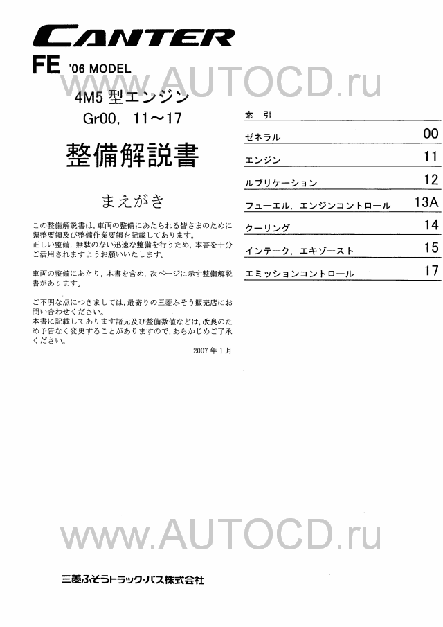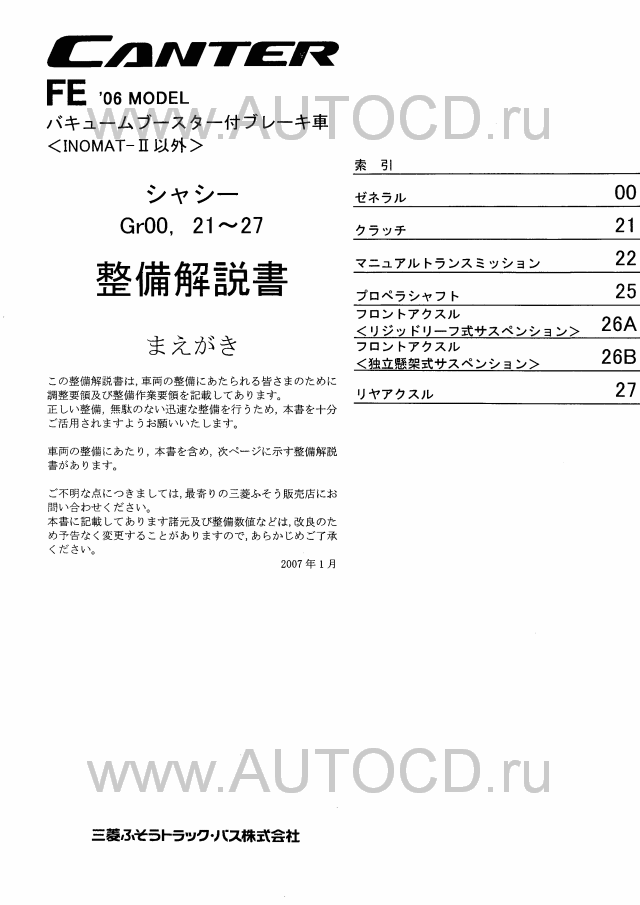 Fuso Workshop Manual. Japanese Market. Japanese Language.