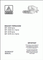 Документация по ремонту и сервисный мануал для Massey Ferguson комбайнов MF 7260, 7270 Beta серии