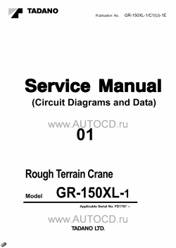 Заводская инструкция по ремонту крана Тадано - Tadano Rough Terrain Crane GR-150XL-1 содержит подробную информацию о сборке и разборке агрегатов, процедур диагностики, электрические схемы, моменты затяжек и др. Информация доступны на Английском и Японских языках. Если модель поставлялась только на локальный рынок Японии инструкции будут на Японском языке, книга с электрическими и гидравлическими схемами будут на английском.