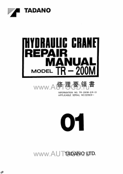 Заводская инструкция по ремонту крана Тадано - Tadano Hydraulic Crane TR-200M-3 содержит подробную информацию о сборке и разборке агрегатов, процедур диагностики, электрические схемы, моменты затяжек и др.
