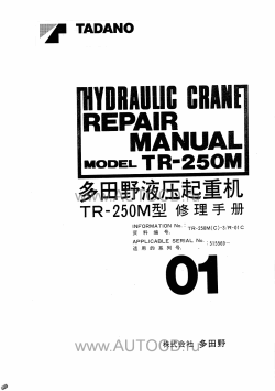 Заводская инструкция по ремонту крана Тадано - Tadano Hydraulic Crane TR-250M(C)-3 содержит подробную информацию о сборке и разборке агрегатов, процедур диагностики, электрические схемы, моменты затяжек и др.